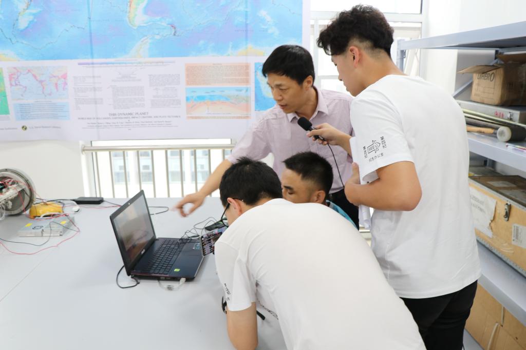 在海洋探测实验室里,雷超老师给广大网友介绍了深夜福利 师生参与大洋科考的具体情况。在2017年的IODP大洋科考活动中雷超老师视频连线海洋学子,将实时拍摄的科考画面传回了地大教学现场,给同学们上了一节“特殊”的海洋科普教育课程。