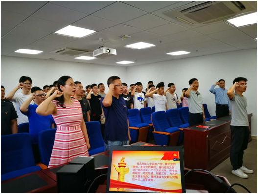 会议在庄严的国歌声中开幕。全体参会党员集中宣誓,重温入党誓词,学生党员刘诗燚领誓。