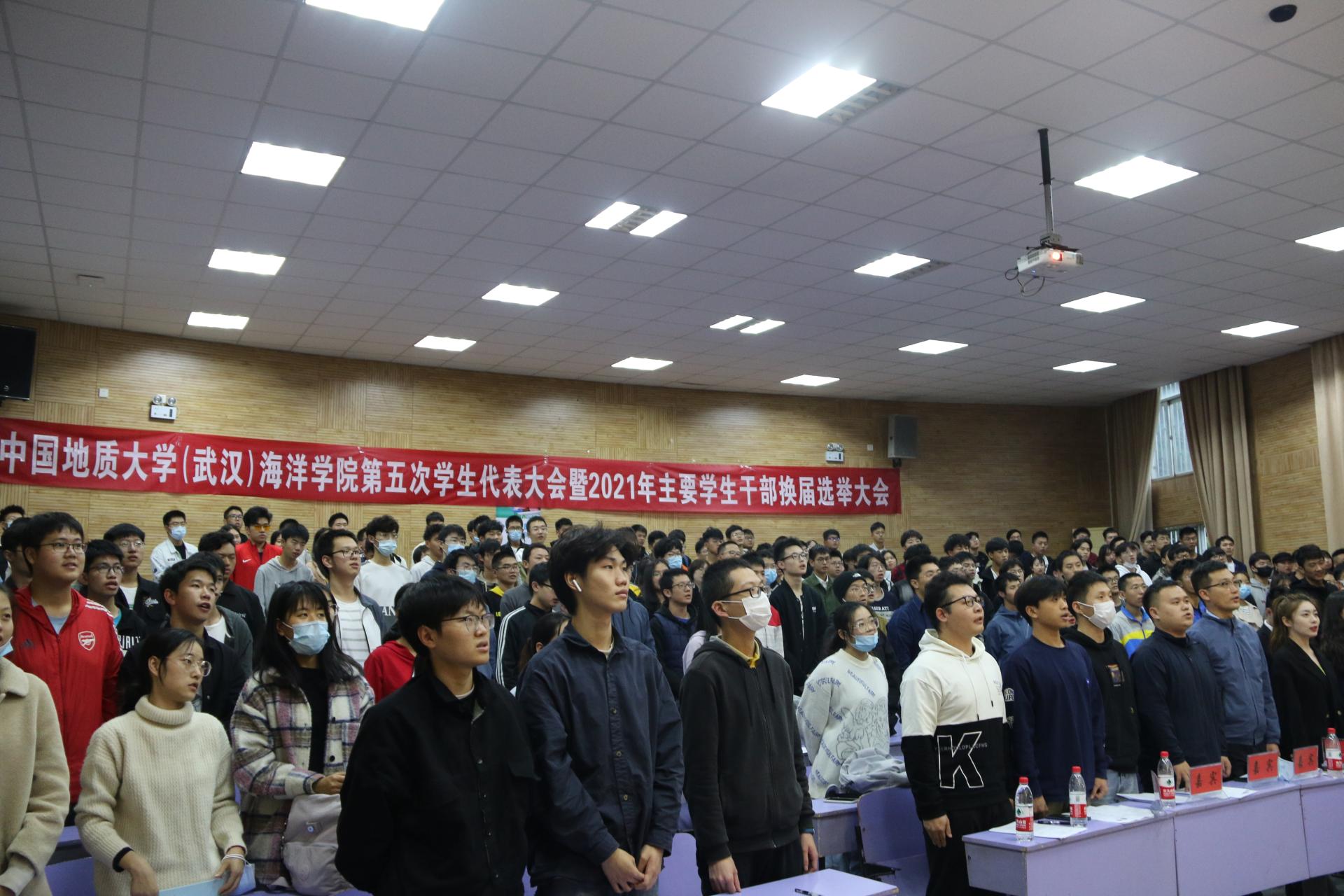 会议最后,与会全体师生起立合唱《光荣啊,中国共青团》,大会圆满结束。