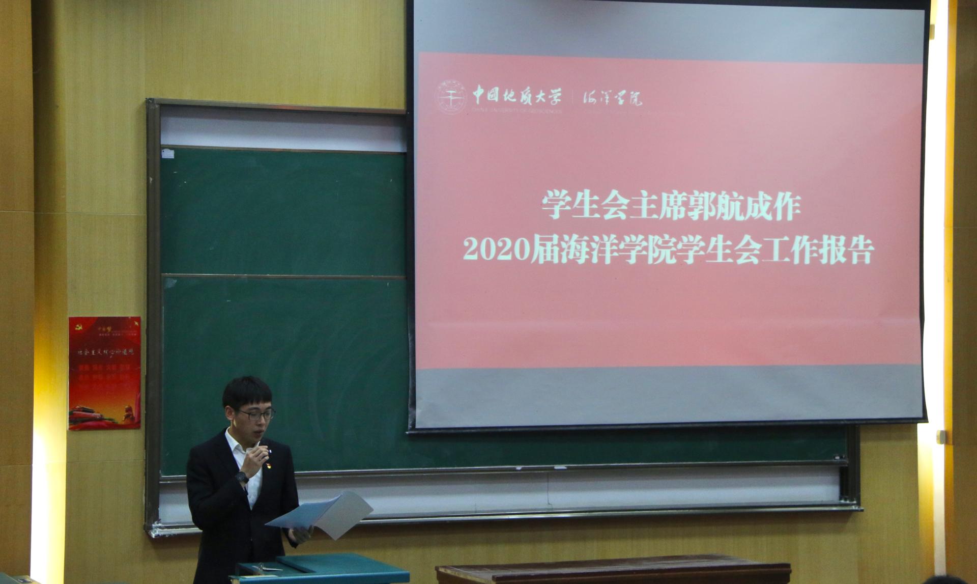学生会执行主席郭航成向大会作题为《学习新思想,奋发新作为,改革再出发》的工作报告。报告从“着力思想引领,建设奋进海洋”、“弘扬严谨学风,搭建智慧海洋”、“立足青年成长,凸显活力海洋”、“展现学科特色,彰显卓越海洋”四个方面系统地回顾了第四次学生代表大会以来学生会的工作情况。报告指出2020-2021学年是深夜福利 继续实施并完善《团学机构改革方案》的一年,深夜福利 学生会积极响应共青团改革再出发的号角,对现有团学组织框架进行改革调整,较圆满的完成了本年度的各项工作。