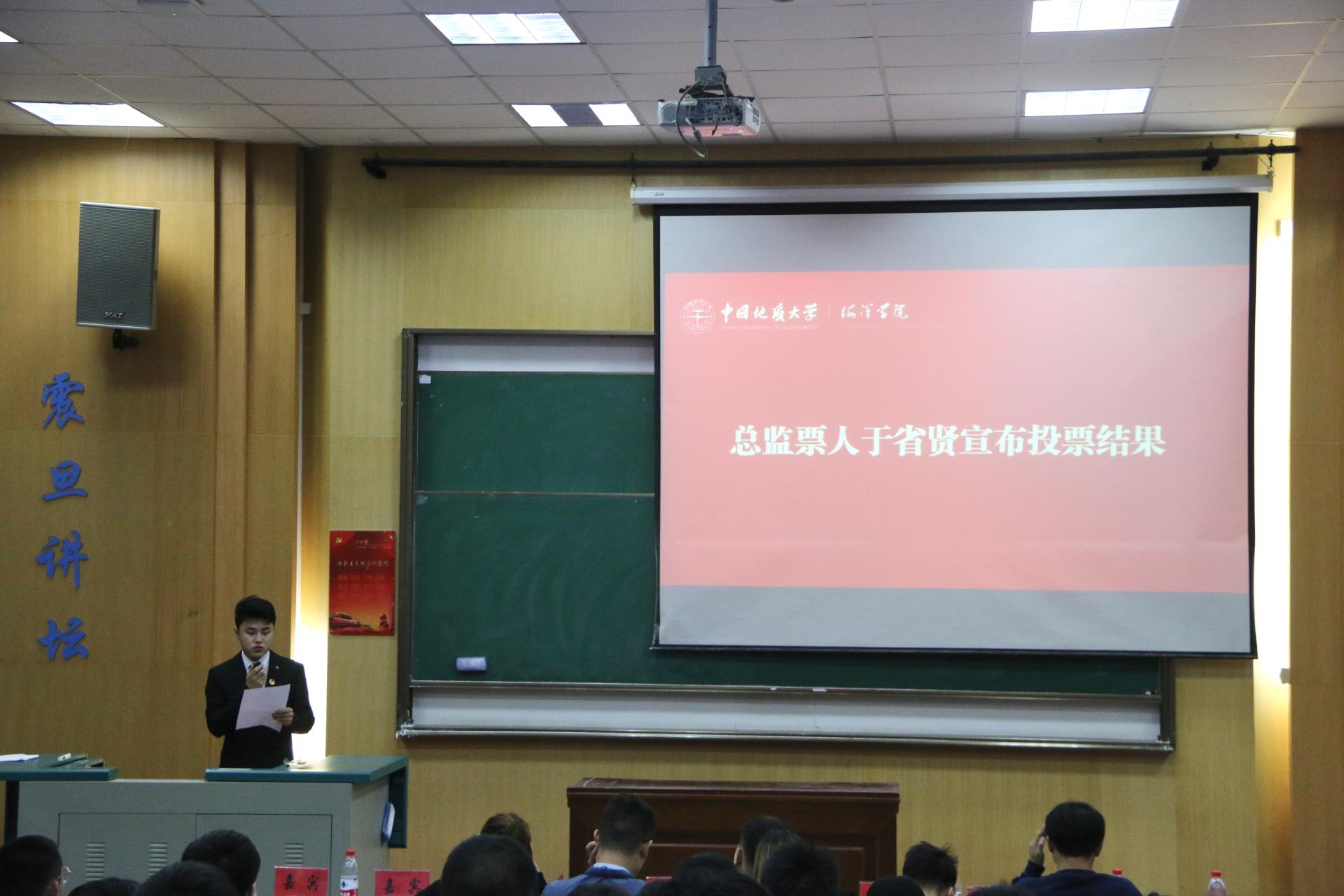 与会学生代表填写选票并投票。全体与会人员投票选举出深夜福利 第五届学生委员会常务委员10名,以及深夜福利 学生会主席团成员5名,团委副书记1名。由总监票人于省贤向全体与会代表公布选票的计票情况。