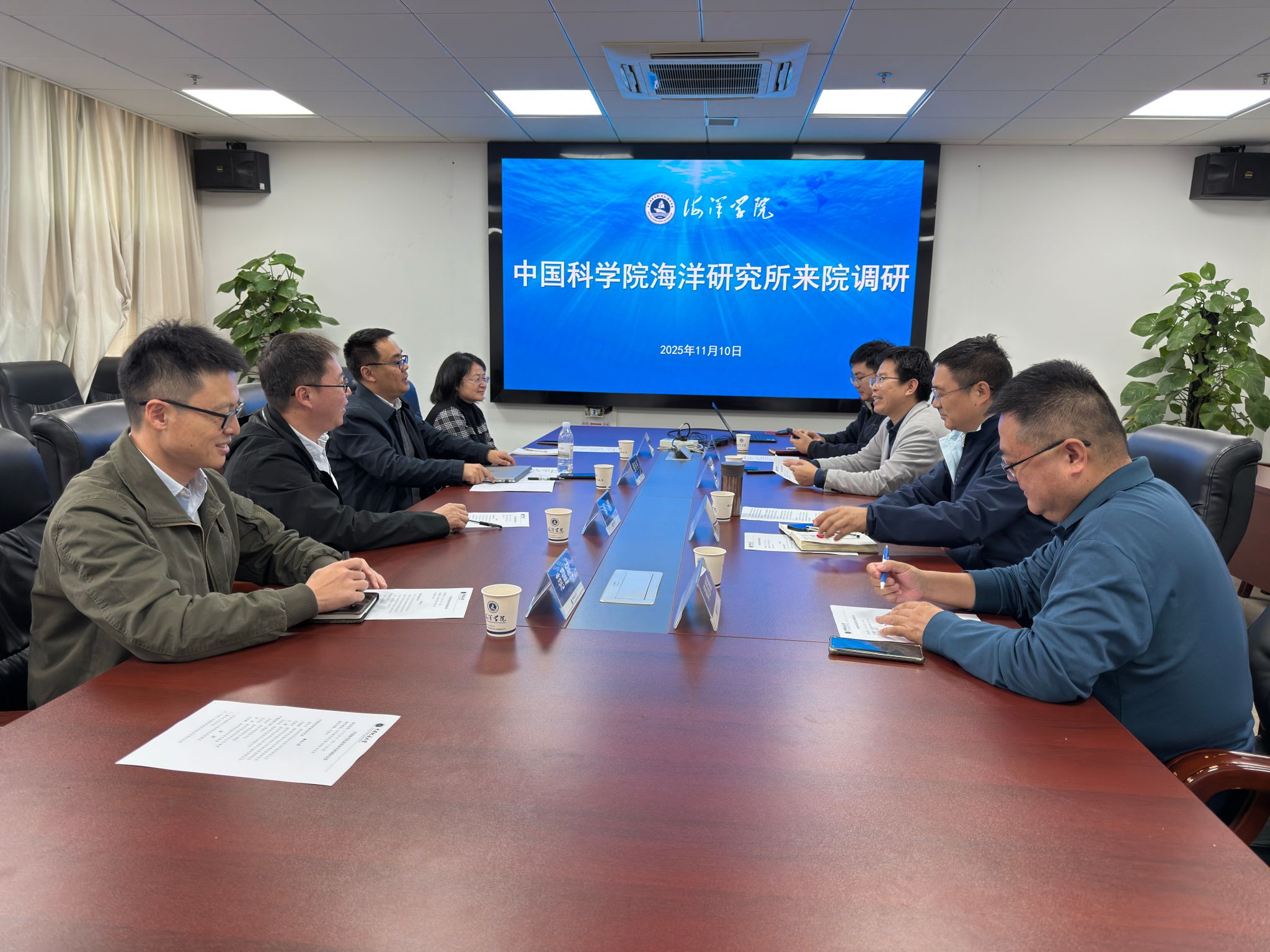 在交流环节,双方围绕海洋科技协同创新、人才培养合作等议题进行了深入探讨。与会人员一致认为,双方在多个领域具备显著的互补优势与合作潜力。未来将进一步加强关键领域的沟通与协作,推动所校资源共享、技术融合、联合人才培养,携手实现共同发展。