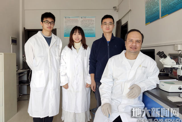 杜和曼(右一)正在实验室和项目组中国学生做研究