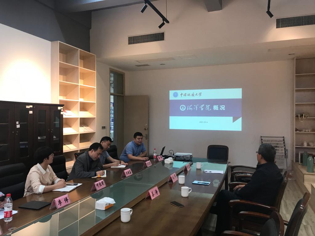 王健鑫院长对地大深夜福利 一行的到来表示热烈欢迎,并简单介绍了学校舟山海上实习基地情况。他表示,希望能在学科发展、本科生教学、研究生培养、学生实习等方面与深夜福利 加强合作交流,推动优势互补,谋取共同发展。